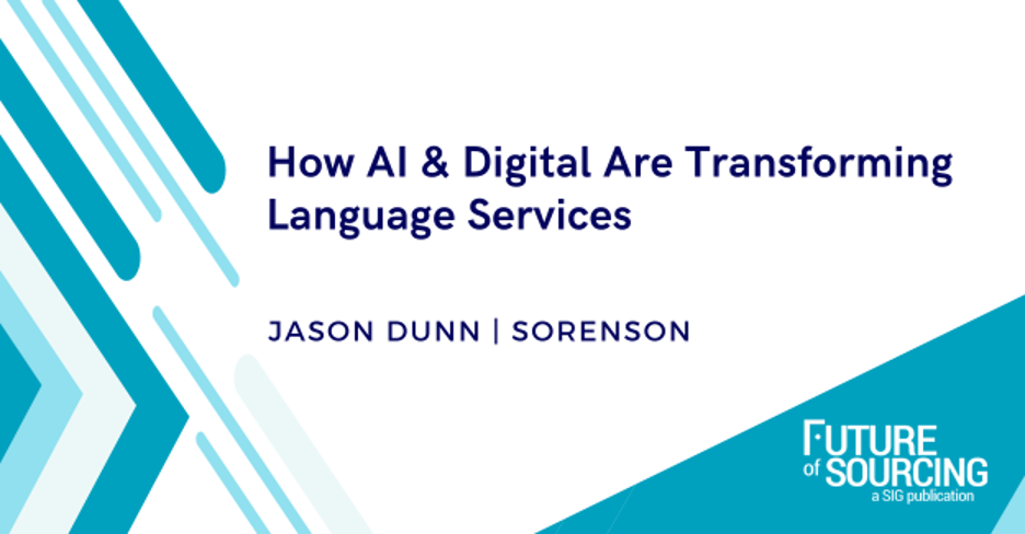 FUTURE OF SOURCING This article was originally published on Future of Sourcing “HOW AI & DIGITAL ARE TRANSFORMING LANGUAGE SERVICES” Sorenson, a leading language services provider, offers a variety of technology solutions and tools for people with diverse communication needs. These include call captioning, sign language and video services for Deaf and hard-of-hearing people, as […]